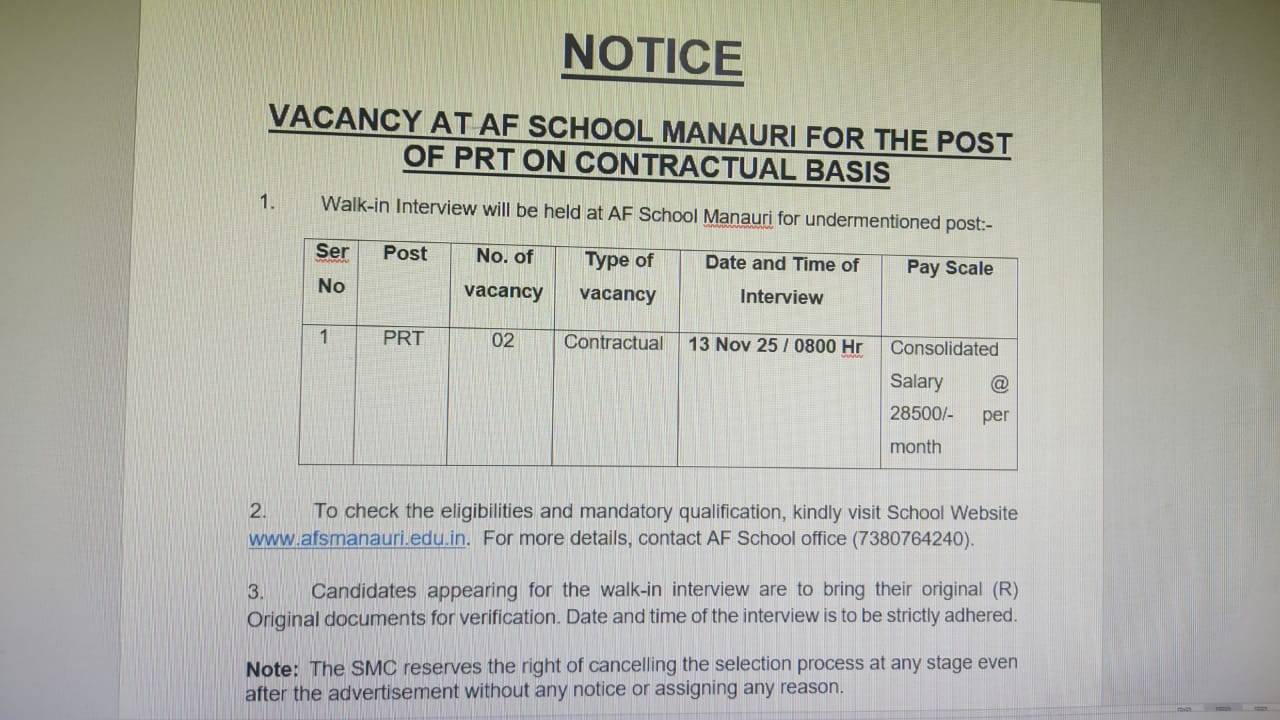 CONTRACTUAL BASIS. CANDIDATES APPEARING FOR THE WALK IN INTERVIEW ARE TO BRING THEIR ORIGINAL DOCUMENTS FOR VERIFICATION.